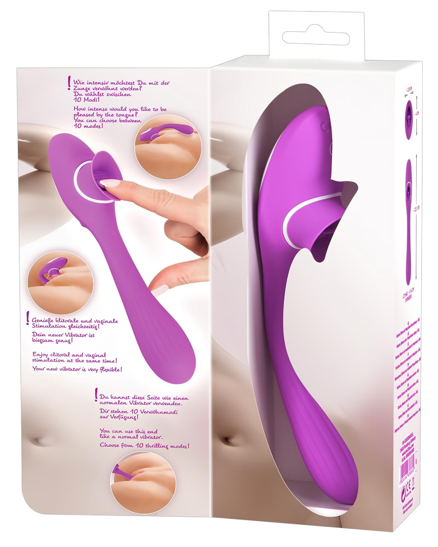 Egy kettő az egyben nyalógép és vibrátor: két érzéki funkcióval felszerelve: vibrál és gyors nyelvcsapásokkal kényeztet!