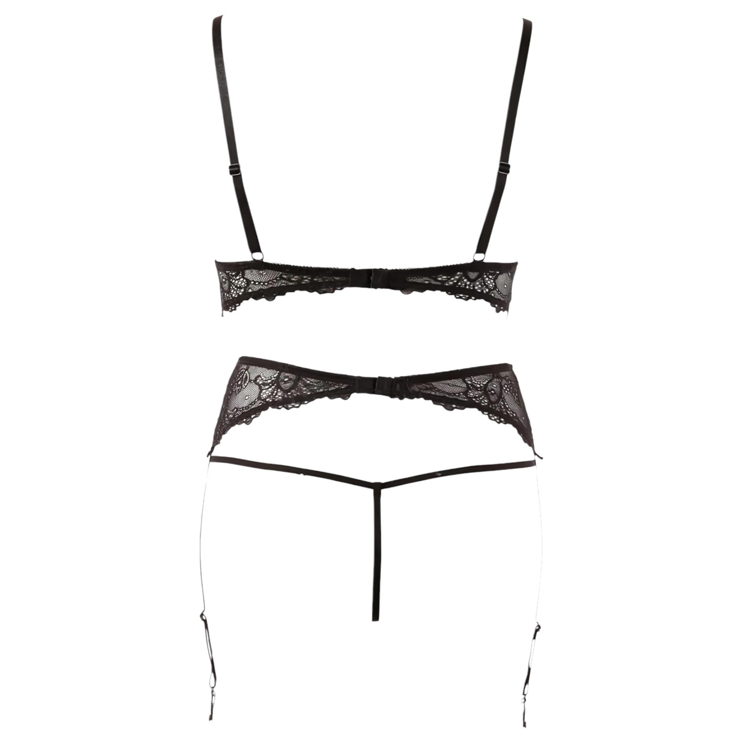 Vedd fel a melltartót és állítsd be a pántokat a tökéletes illeszkedéshez. Kapcsold fel a harisnyatartó övet, majd párosítsd a szettet kedvenc harisnyáddal a teljesen elbűvölő hatásért. A nyitott tanga gondoskodik arról, hogy a csábítás minden pillanatban jelen legyen.