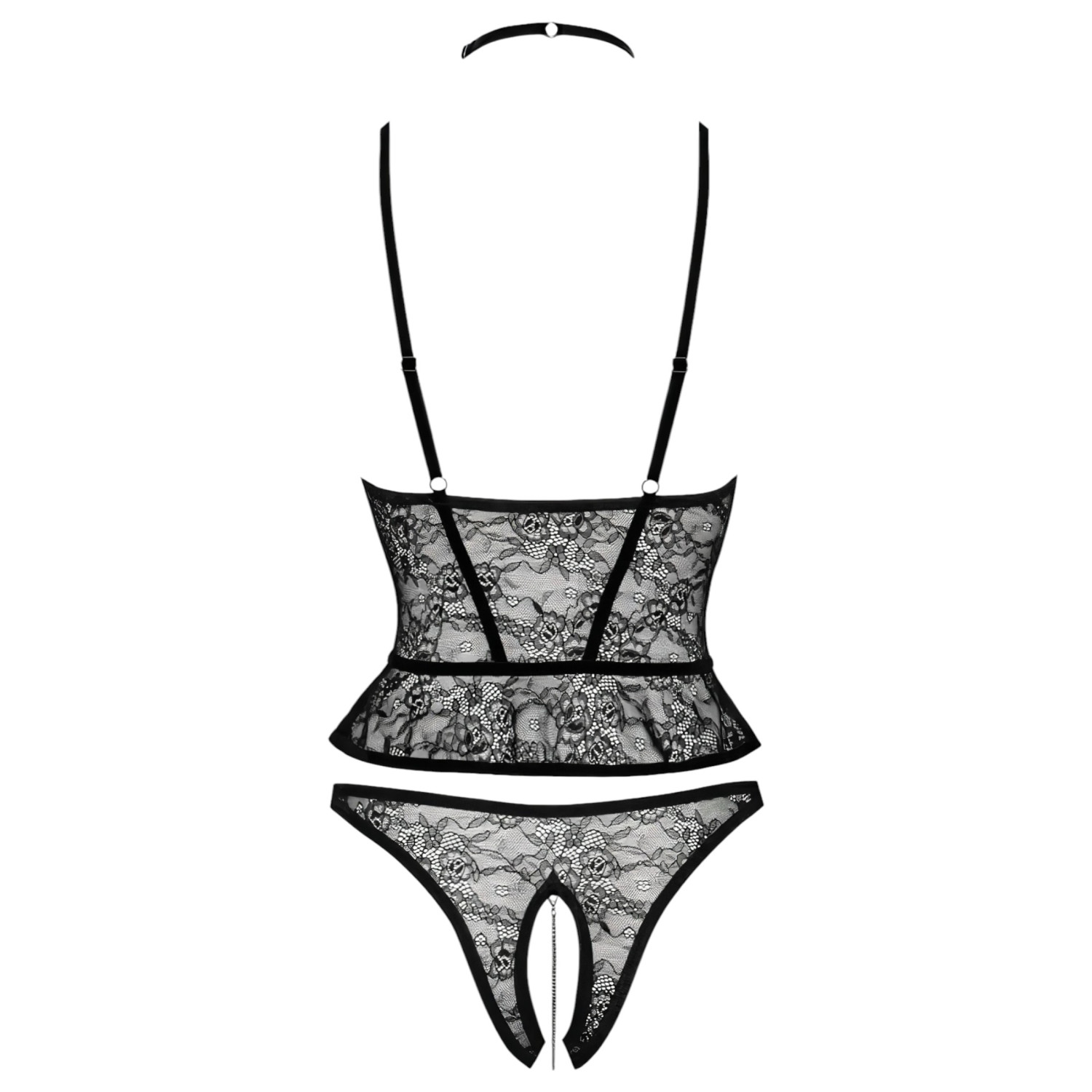 Vadító csipkéből készült nyitott mellemelő fűző, a hozzá tartozó tangával – Abierta Fina nyitott tanga és fűző, amelyben garantáltan a legcsábítóbb oldalad mutathatod meg!