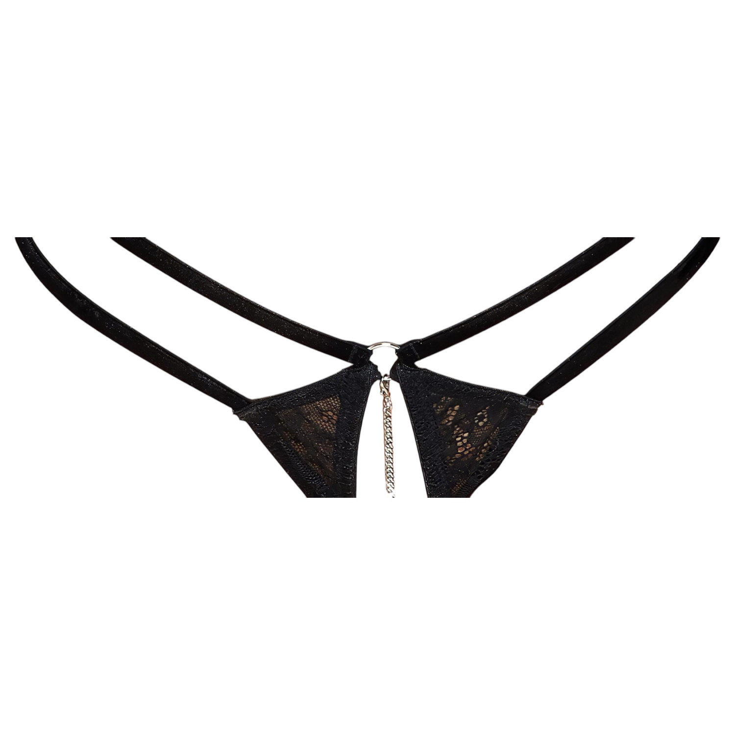 • 1 db szeméremnél nyitott csipke tanga ezüst lánccal