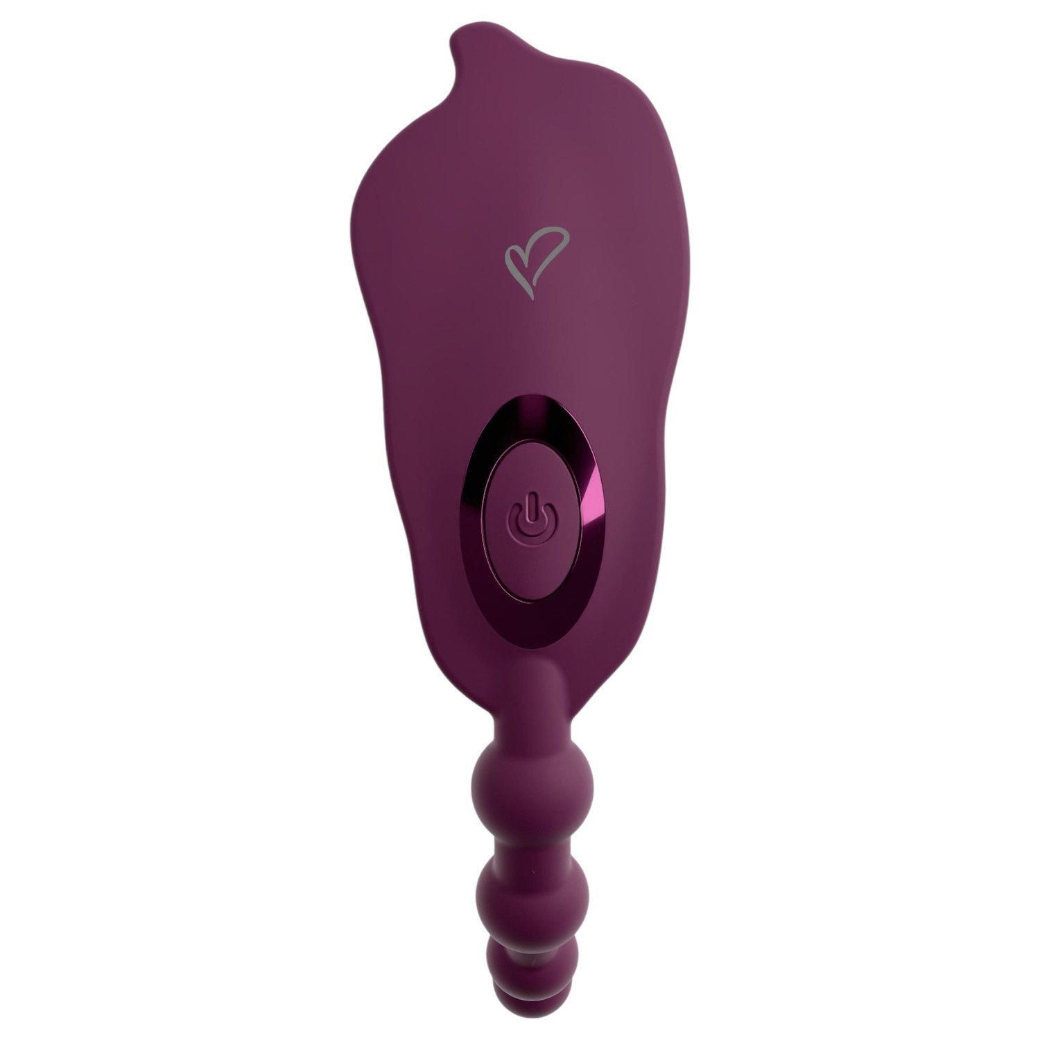 Helyezd a bugyivibrátort az alsóneműbe vagy közvetlenül a testre. A nagyobb, gömbölyű rész kerüljön a vagina irányába, a kis pöttyös felső rész pedig a csiklóhoz simuljon. A rugalmas gyöngysor a perineum/ánusz zónát stimulálja. Válaszd ki a kívánt rezgési módot a távirányítóval vagy a készülék gombjával.