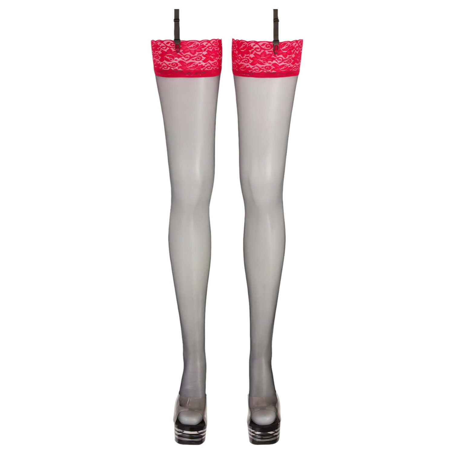 • 1 pár combig érő harisnya piros csipkeszegéllyel