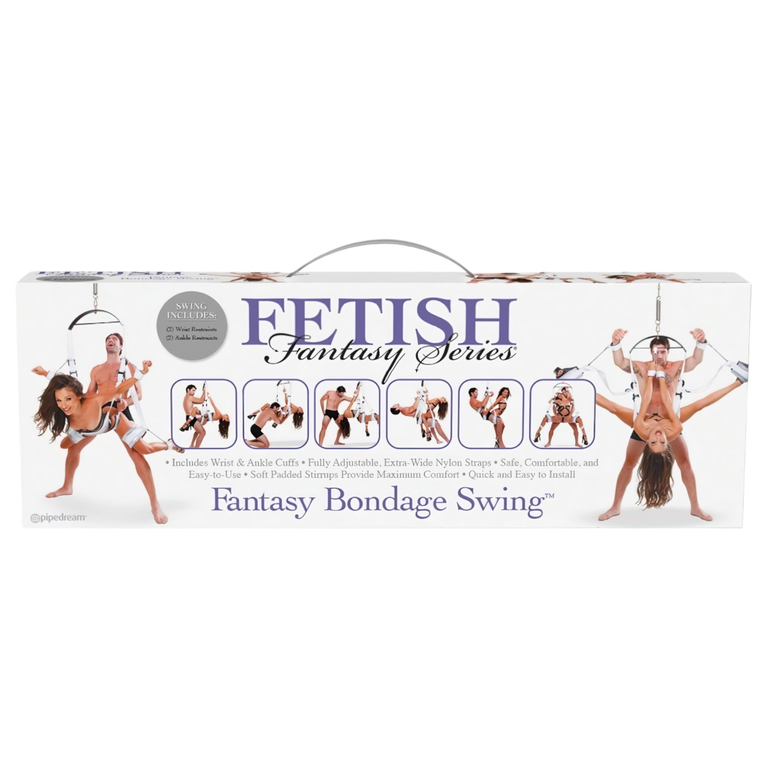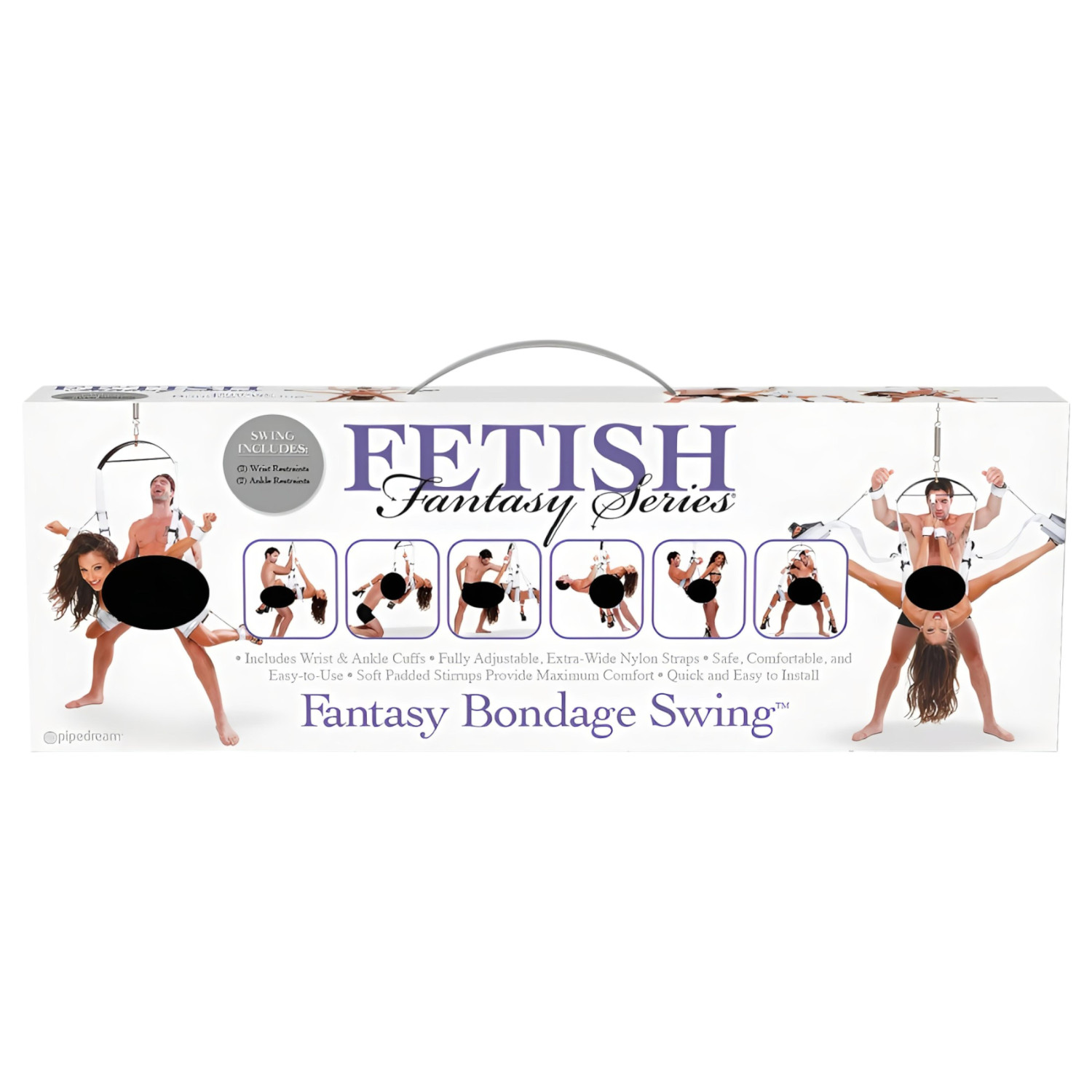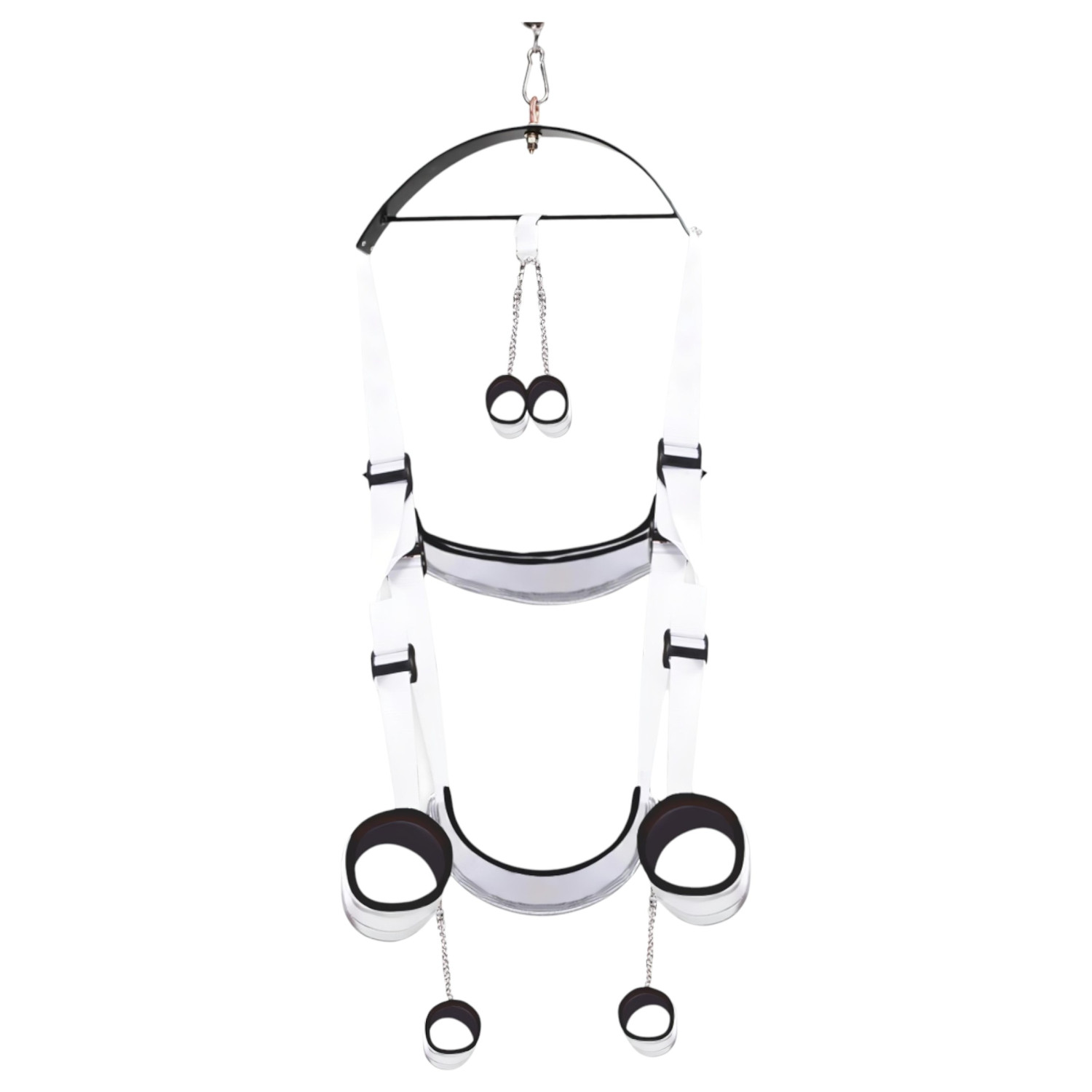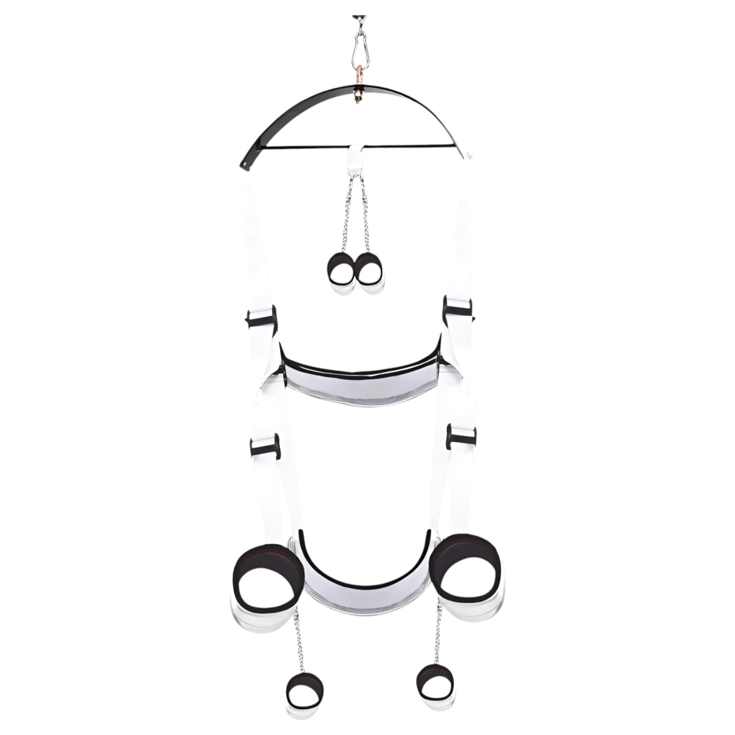 Helyezd fel a hintát a mennyezetre a mellékelt eszközök segítségével. Állítsd be a kívánt magasságot és szöget. A csukló- és bokapántok segítségével rögzítsd a testet a kívánt pozícióban. A hinta használata közben kísérletezz különböző pozíciókkal a még izgalmasabb élmény érdekében.
