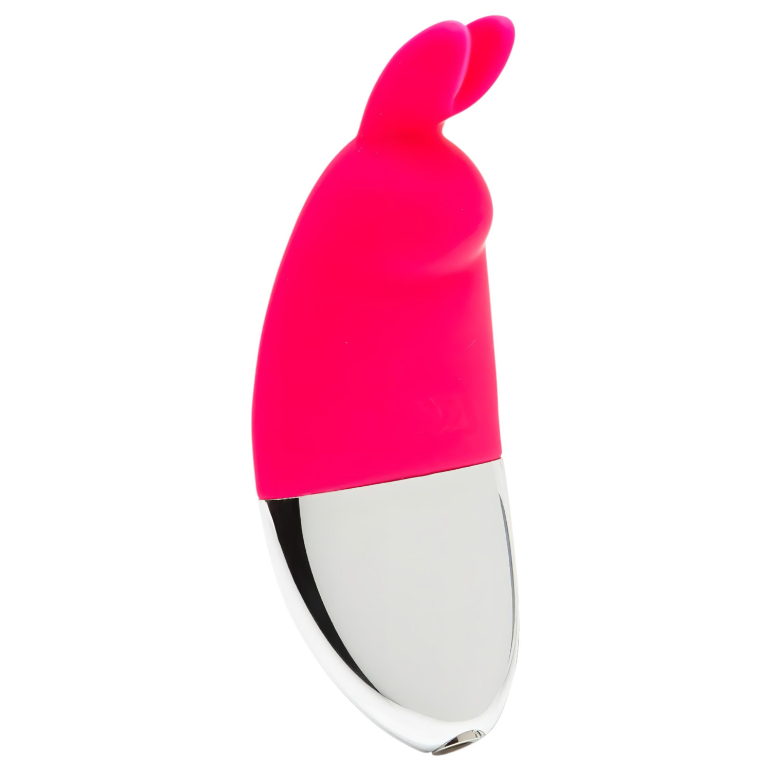 Bájos nyuszis dizájnnal készült ergonomikus, bársonyos szilikon vibrátor, hajlított formával csiklóizgató nyuszifülekkel.