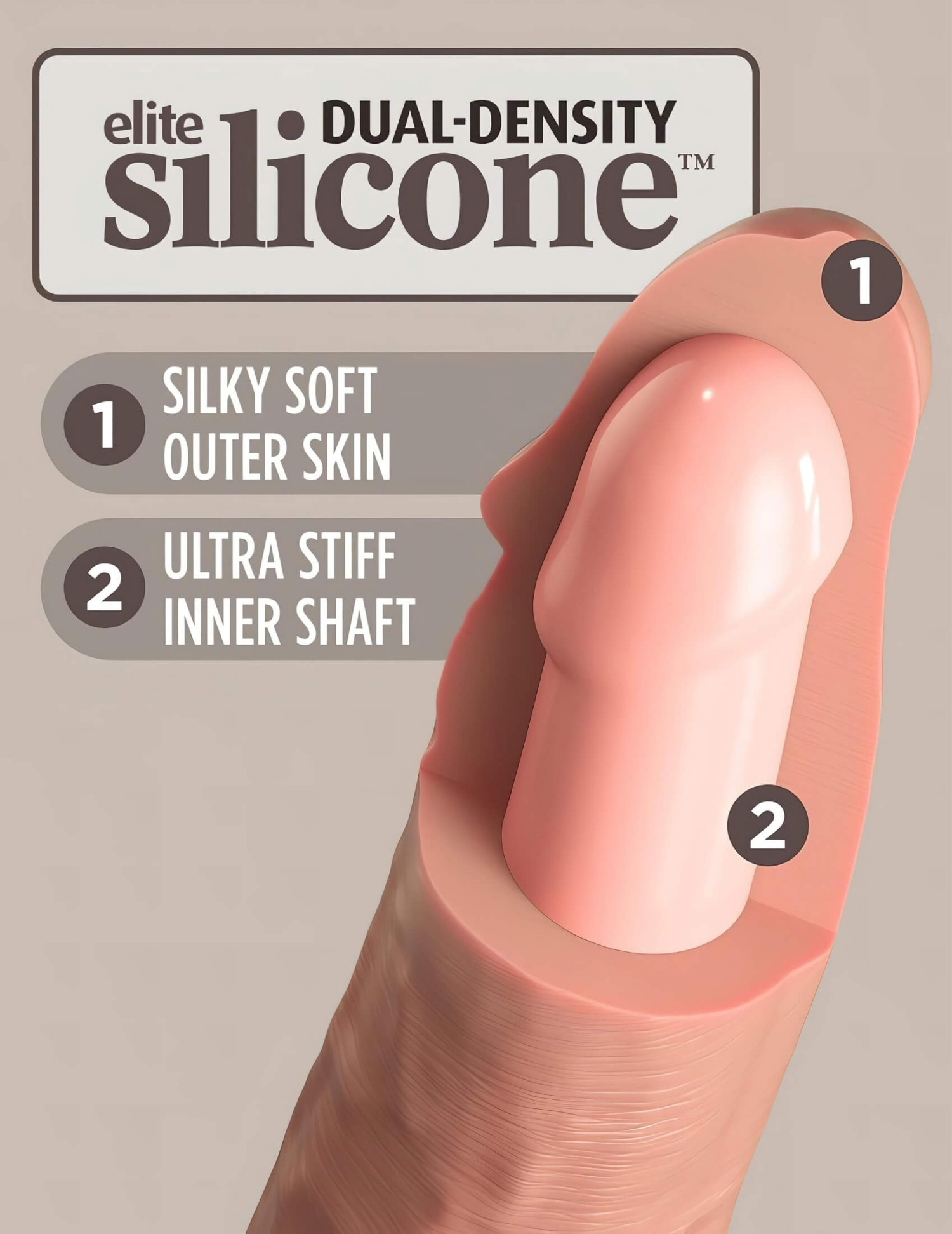 Különleges két rétegű kialakításának hála a belső szilikon réteg erős merevséget ad, így olyan kemény, akár az igazi, míg a külső, ultra puha szilikon rétegnek köszönhetően az érintése olyan, mintha valódi péniszt simogatnál!