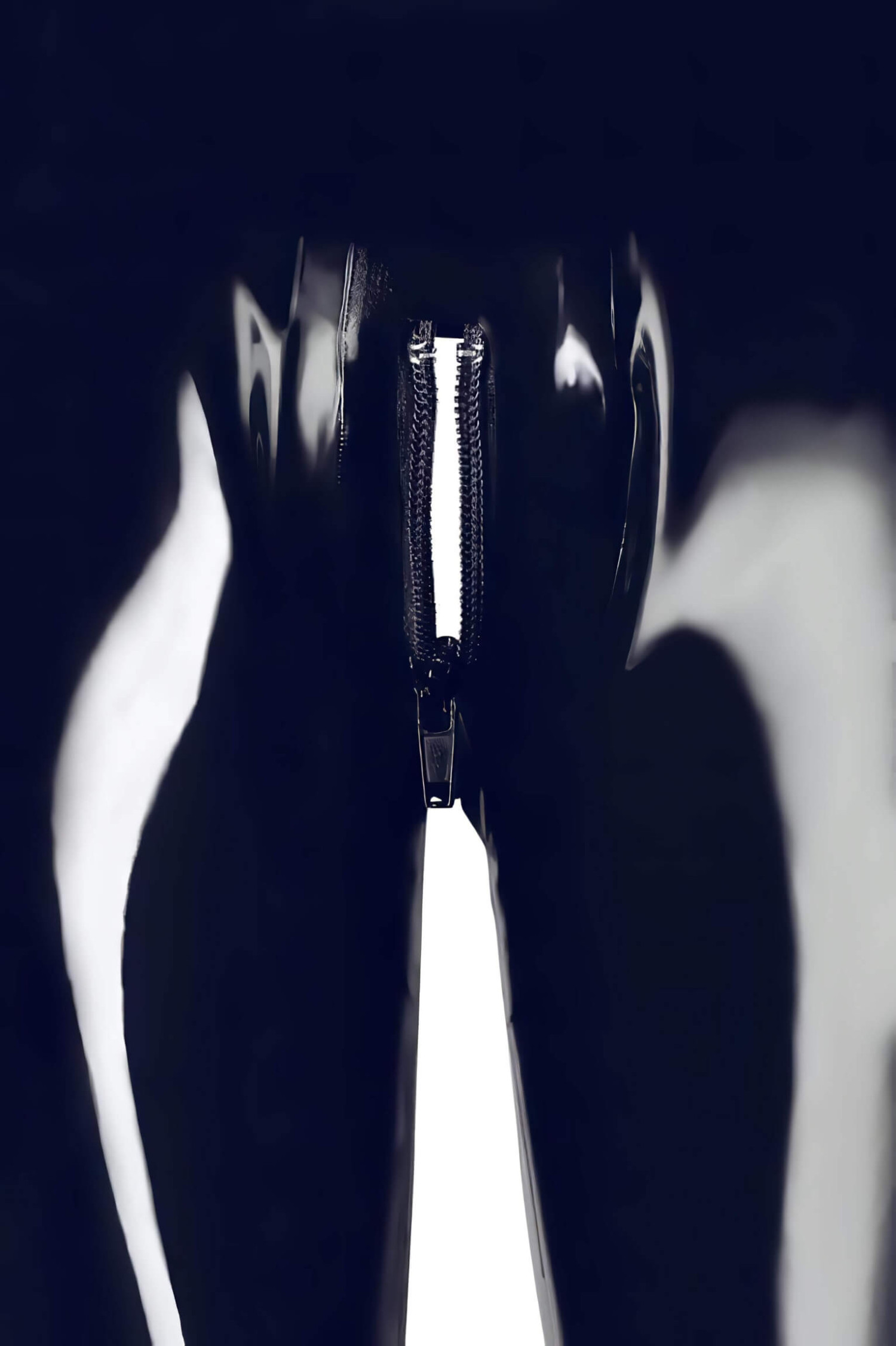• 1 darab fekete, kétutas cipzárral ellátott latex hosszúnadrág, matt felületkezeléssel.