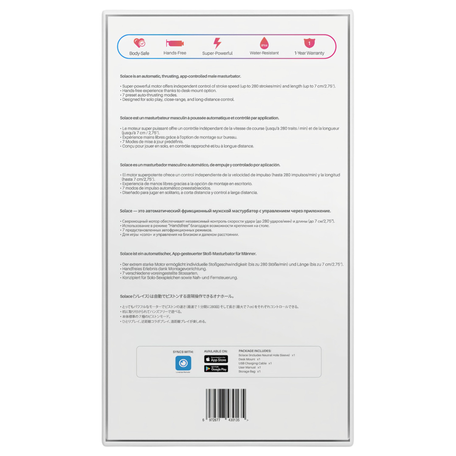 • Kéz nélküli használat - a csomagban asztalra szerelő kiegészítőt is találsz, így kéz nélkül élvezheted, ahogy a Solace eljuttat a csúcsra!