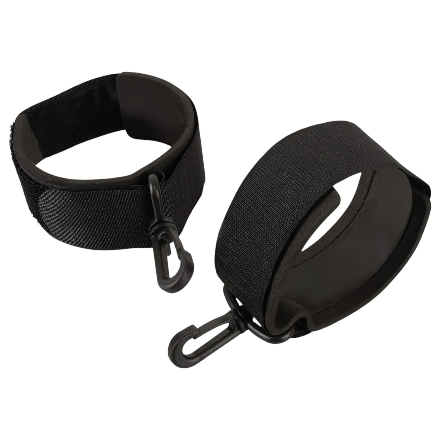 4. Használat után óvatosan oldd ki a karabinereket és a tépőzárat, majd vedd le a bilincseket.