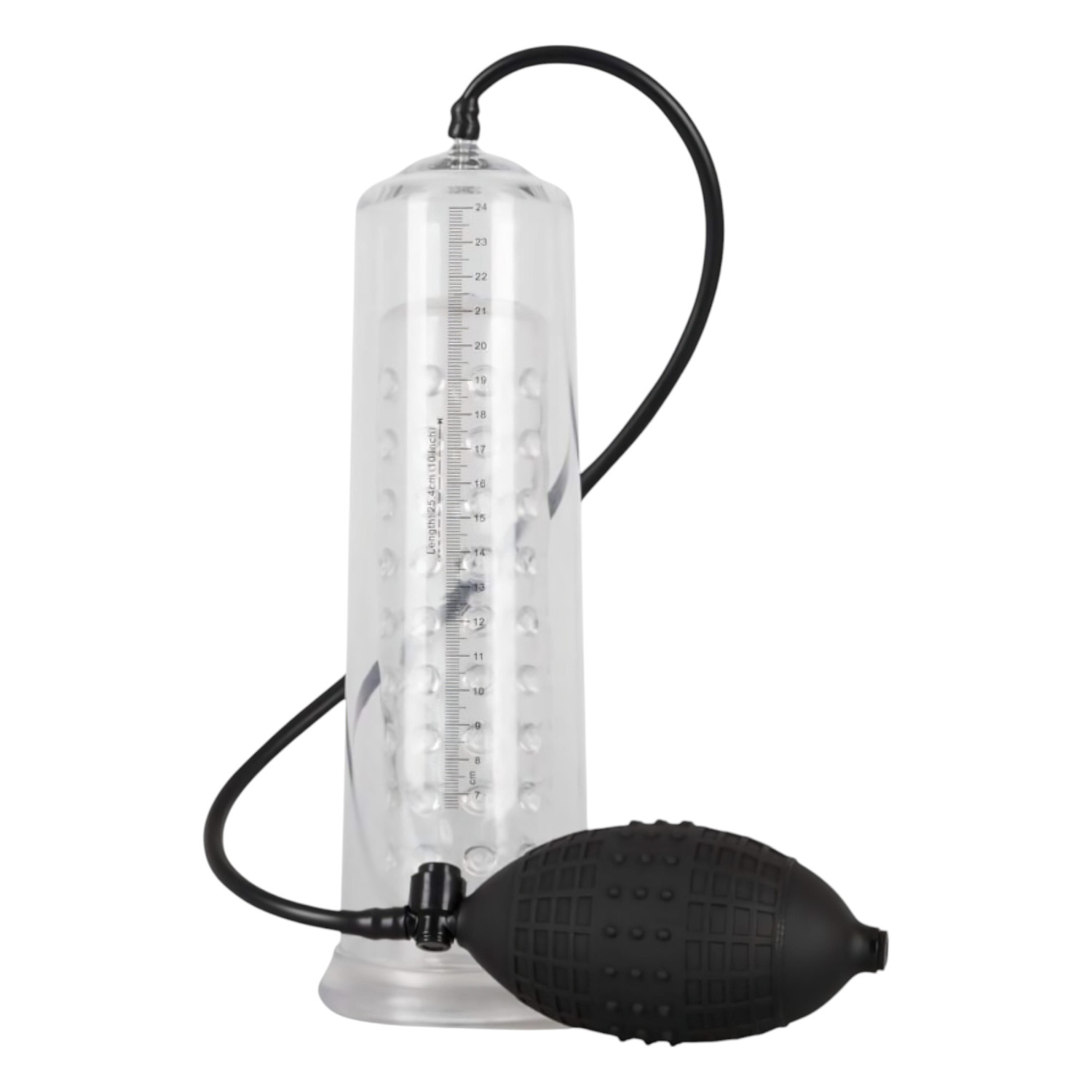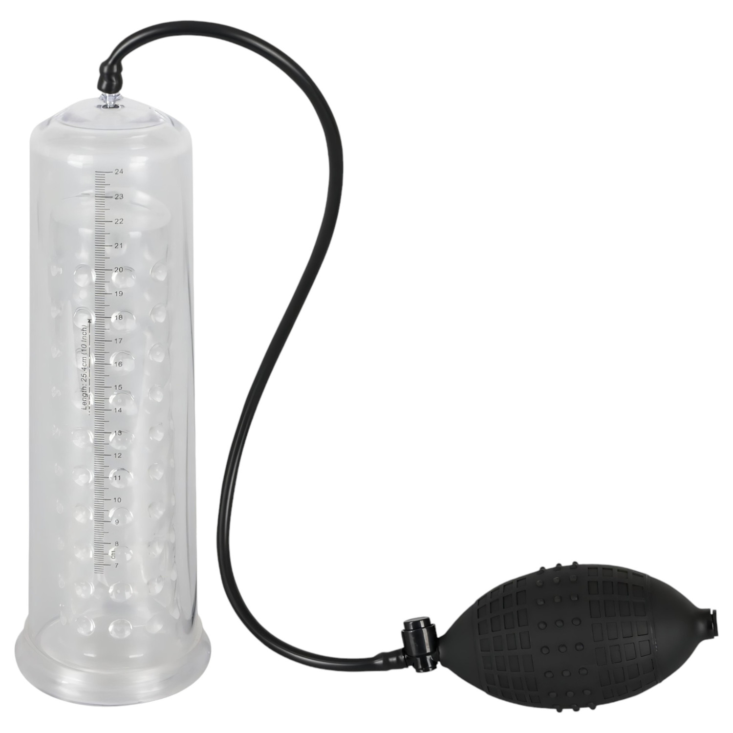 Helyezd a péniszt az extra stimuláló, gömbös felszínű szilikon mandzsettán keresztül a vákuumhengerbe, majd kezd el pumpálni a nagy méretű labdás karral. A keletkező vákuum vérbőséget okoz, amely fokozza az erekciót és segíthet a méretnövekedésben. A henger oldalán található skálával ellenőrizheted az eredményeket. A vákuum megszüntetéséhez használd a biztonsági szelepet.