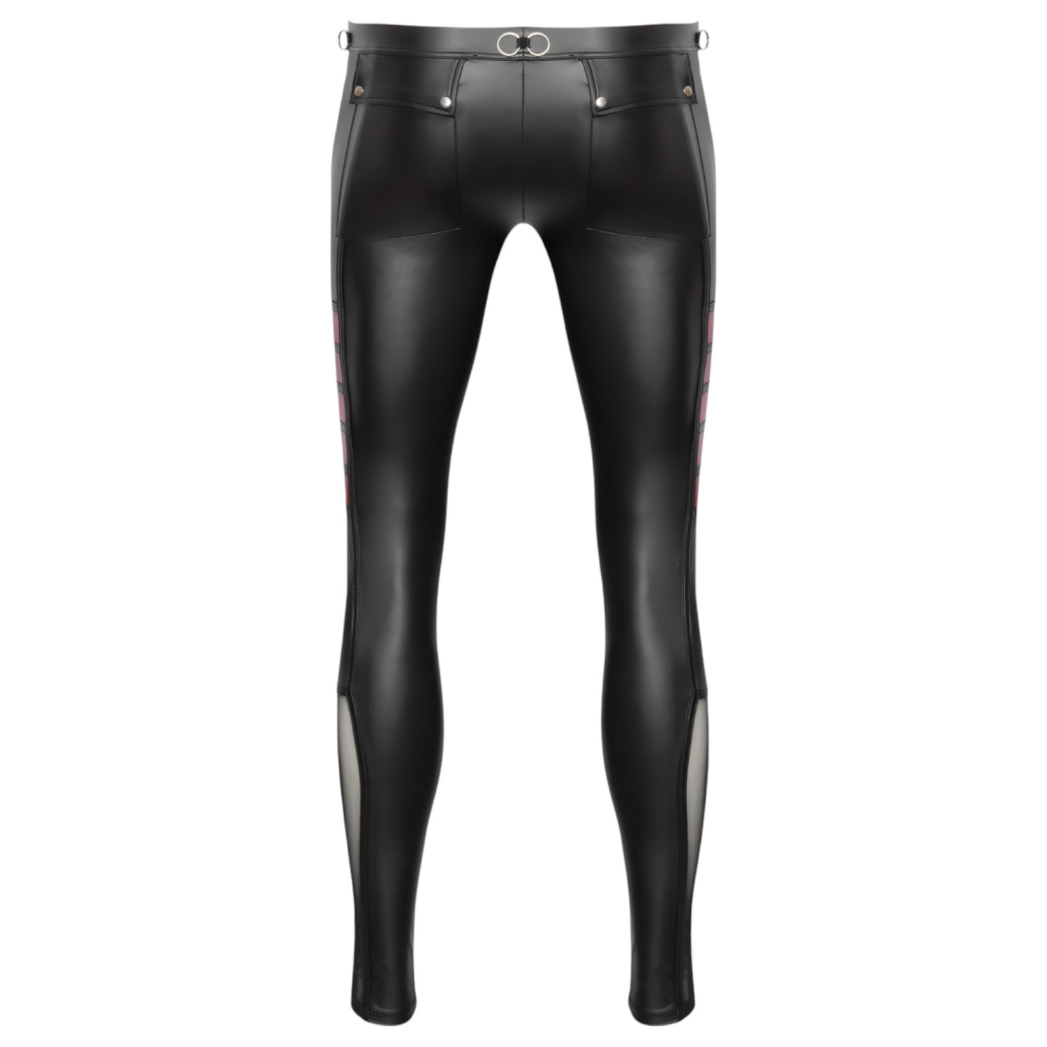 • Dögös dizájn: Látványos szegecses és gyűrűs díszítés piros és necc betétekkel – a domináns stílus kedvelőinek.