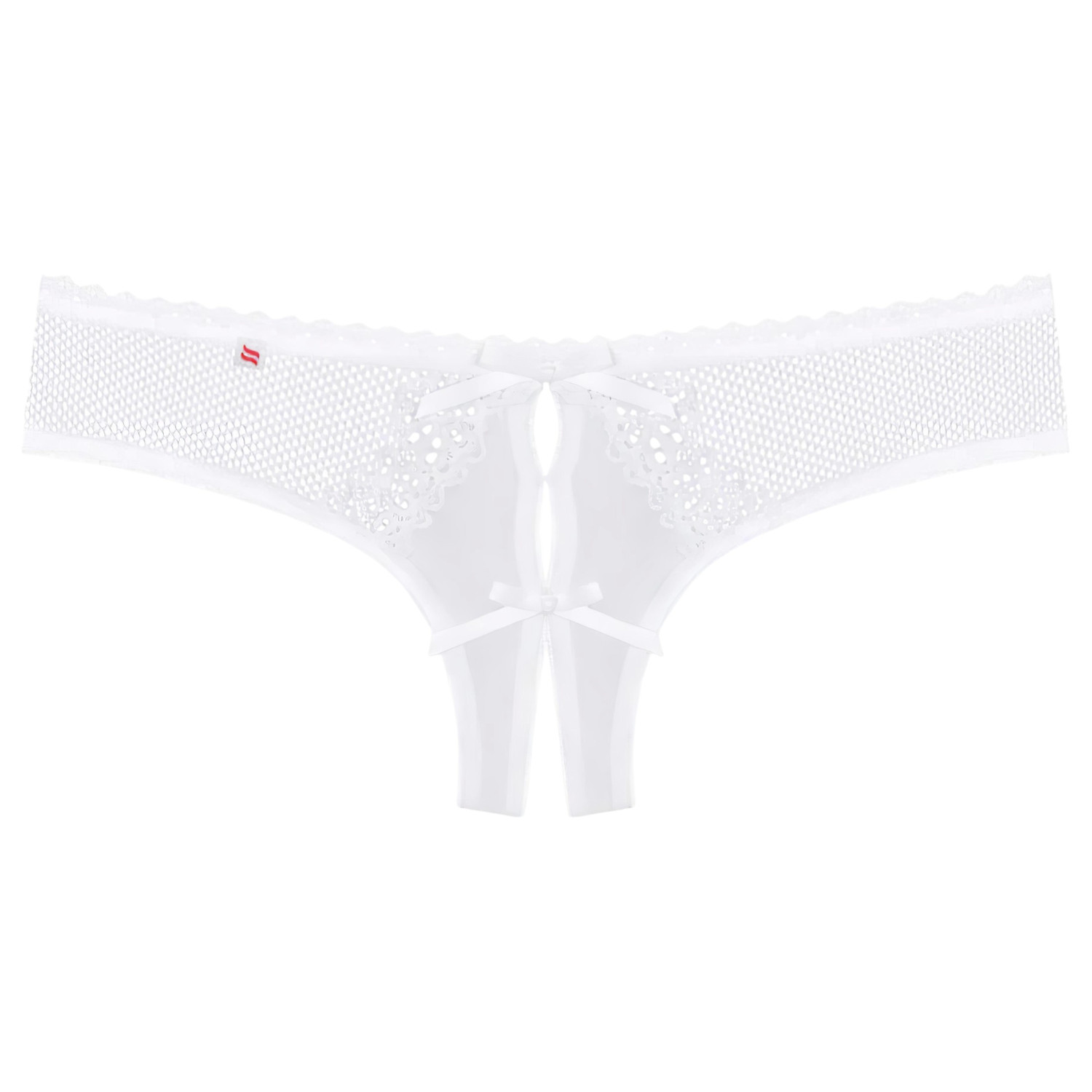 Vélemények Obsessive Alabastra - virágos, masnis nyitott női tanga - fehér