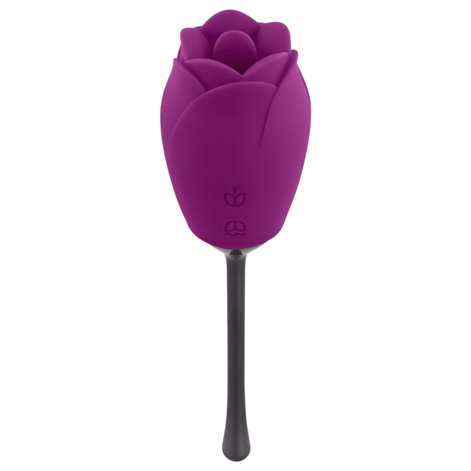 Ez a bájos, rózsa alakú vibrátor kettős stimulációt kínál: nyelvmozgást utánzó csiklóizgatást és vibráló szárat, így személyre szabható élvezeteket nyújt minden hangulathoz.