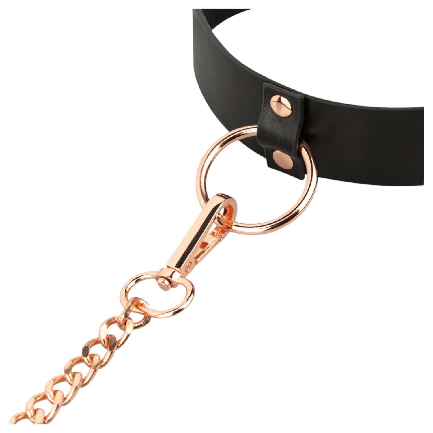 Rosy Gold - nyakörv és póráz (fekete-rózsaarany)
