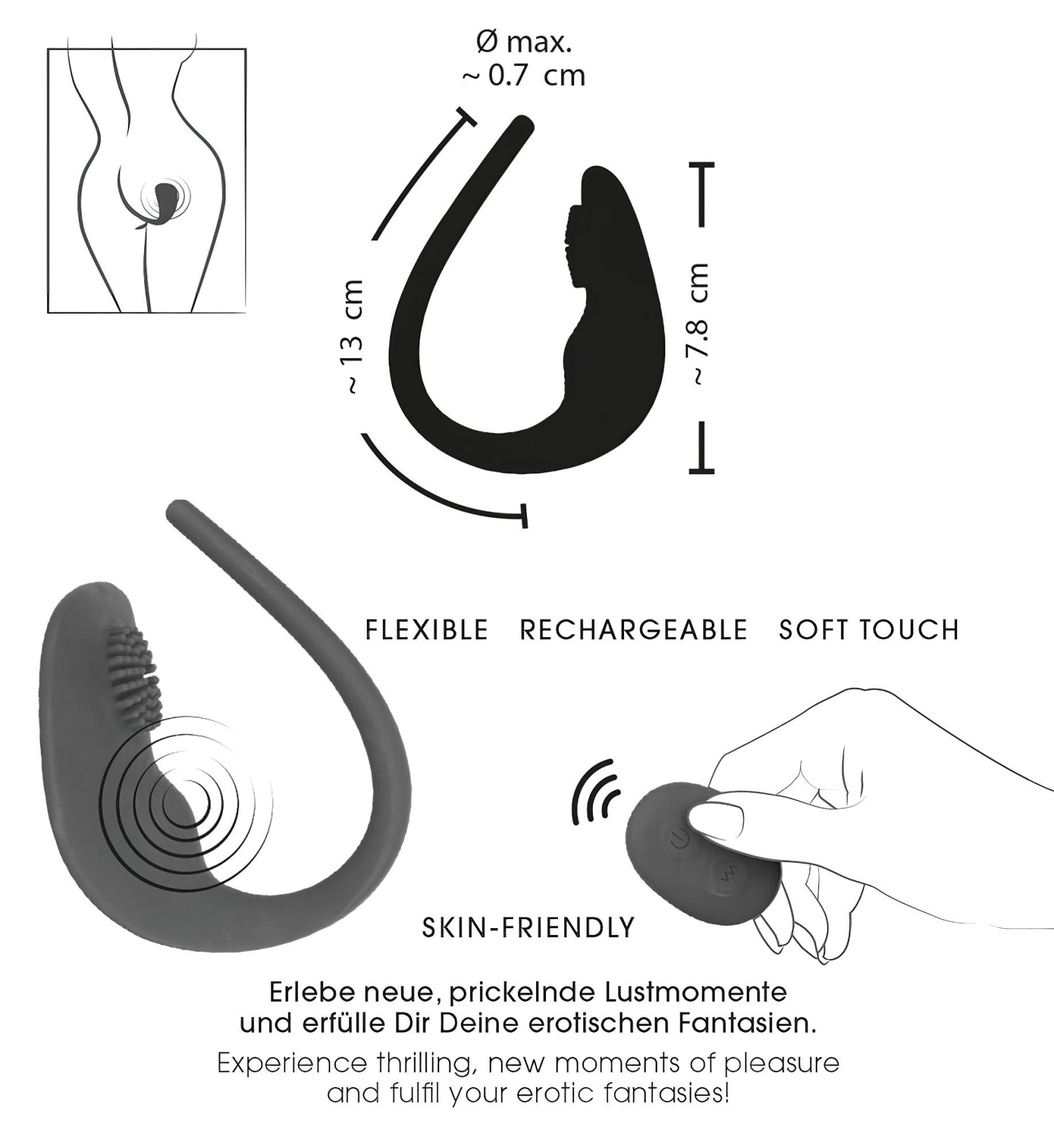 • Anatómiai kialakítás: Tökéletesen illeszkedik a szeméremrészhez, egyszerre stimulálva a csiklót, a szeméremtestet és az ánuszt.