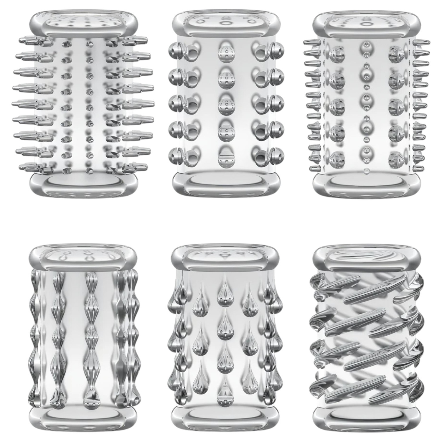 • 6 darab péniszmandzsetta különböző felszínnel (áttetsző színben)