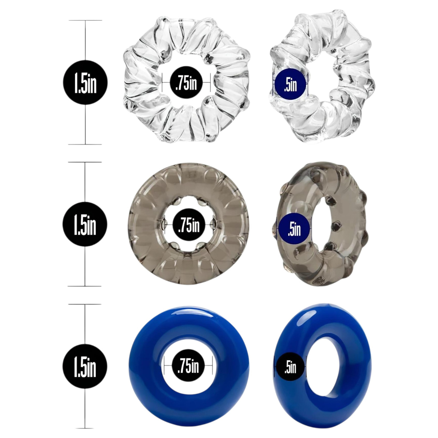Három különböző textúrájú Stay Hard péniszgyűrű, amelyek fokozzák az élvezetet és segítenek meghosszabbítani az együttléteket!