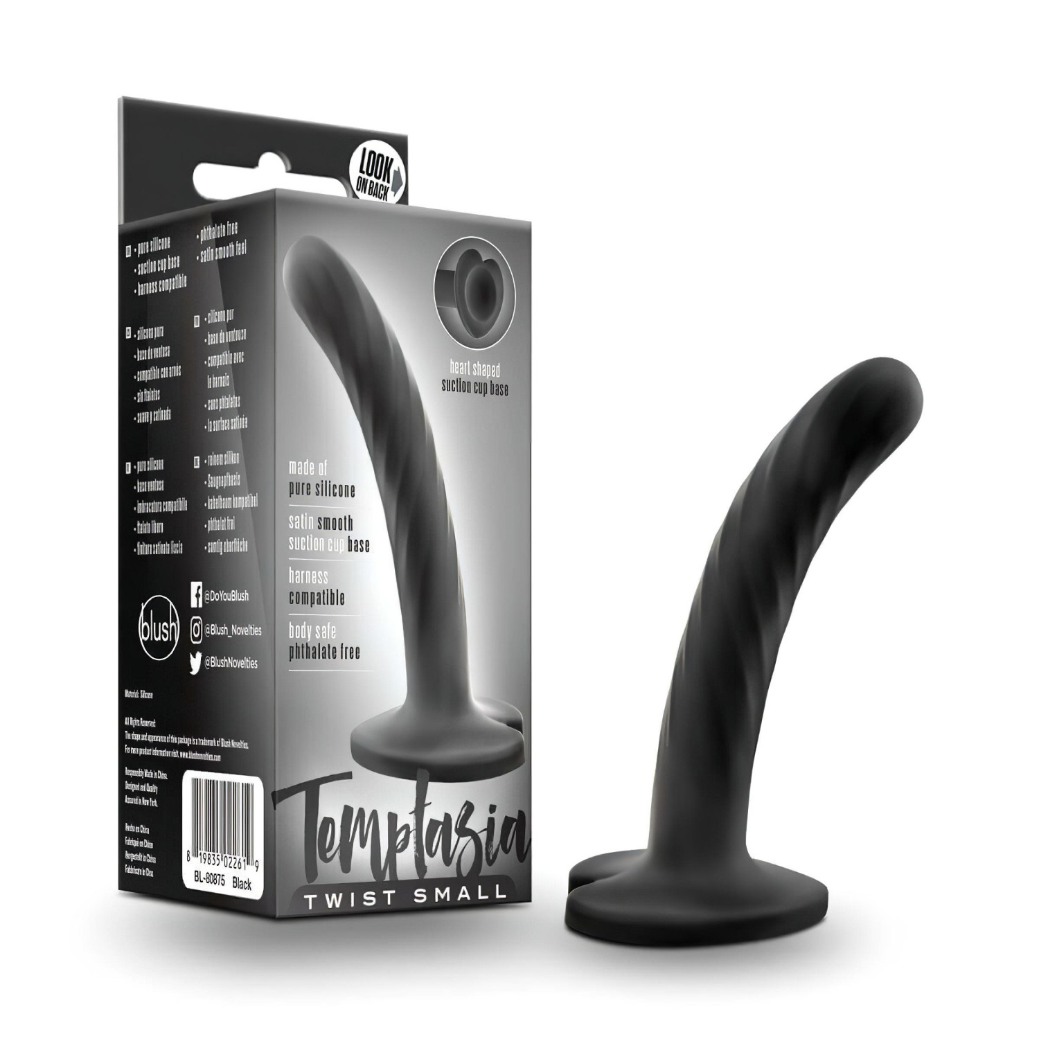 Temptasia Twist Small - tapadókorongos, csavart dildó (fekete)