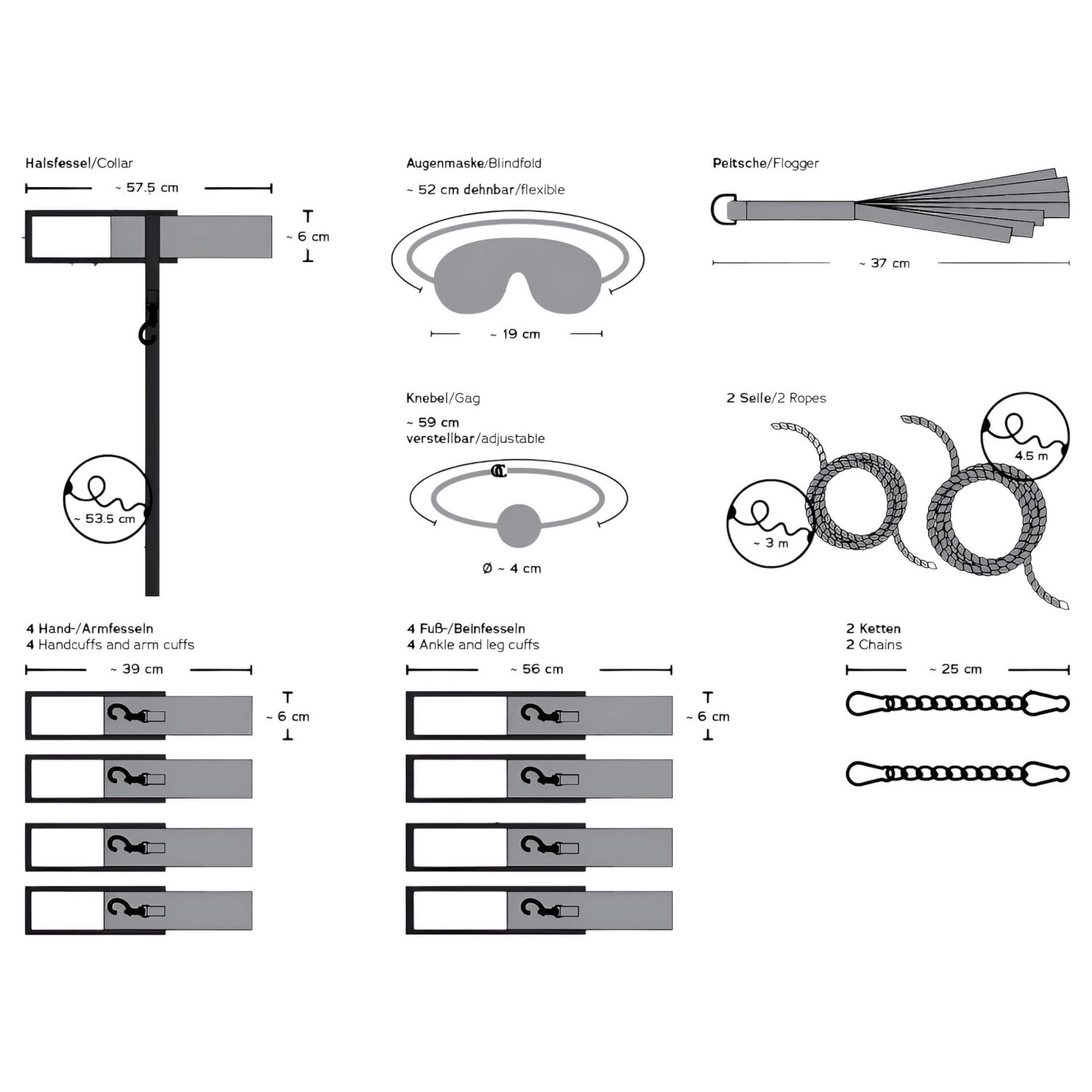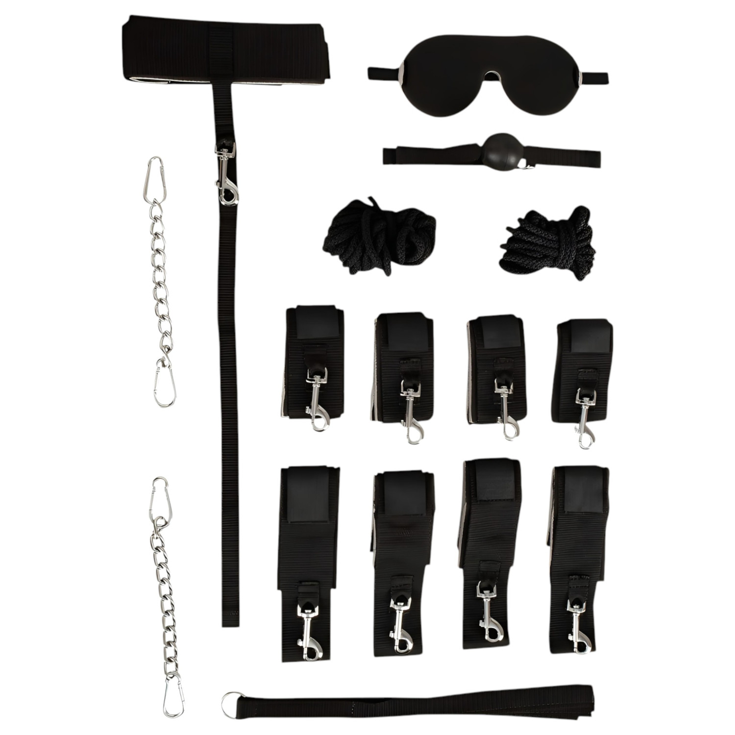 • Sokoldalú kiegészítők – bilincsek, szemmaszk, korbács és bondage kötél.