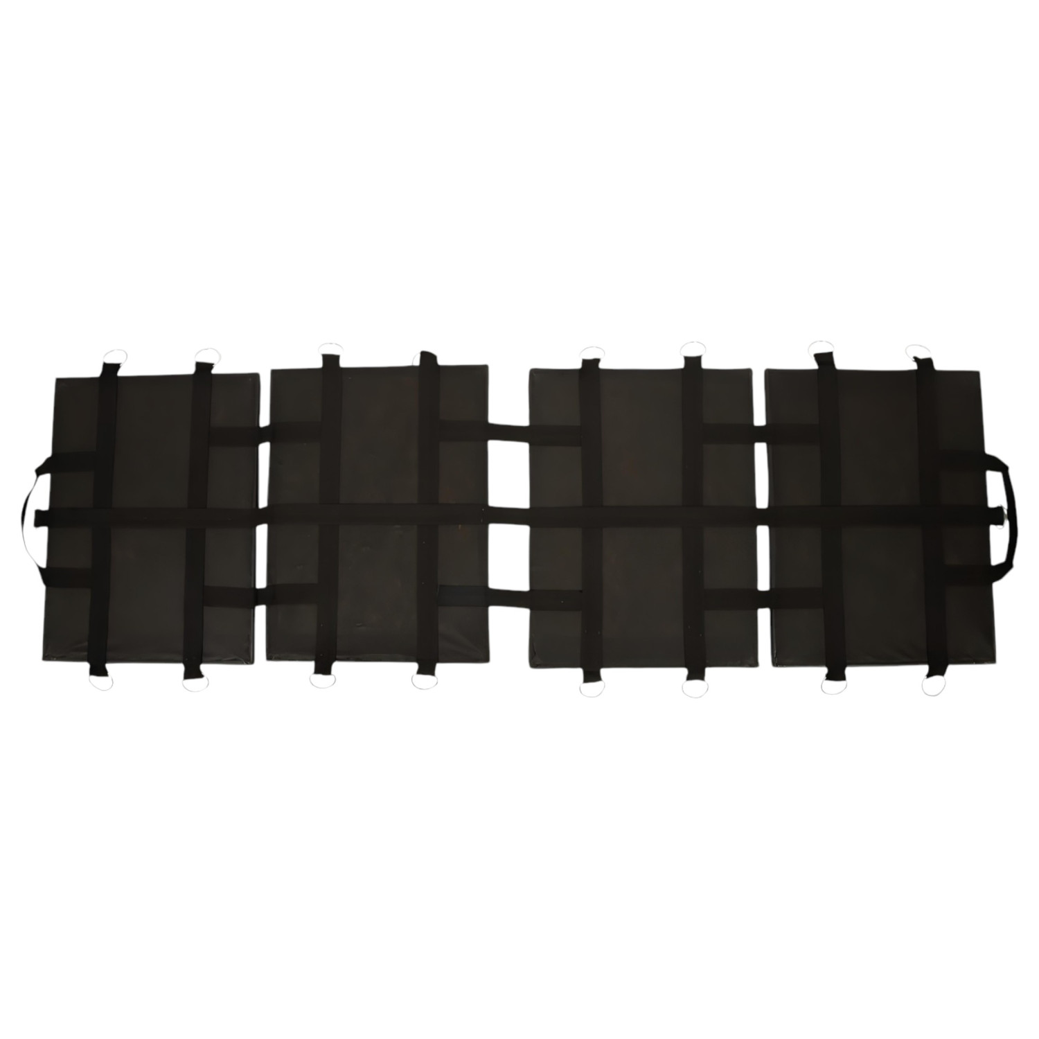 • Összecsukható, párnázott fekvőfelület (pántokkal, hevederekkel, D-rögzítőgyűrűkkel)