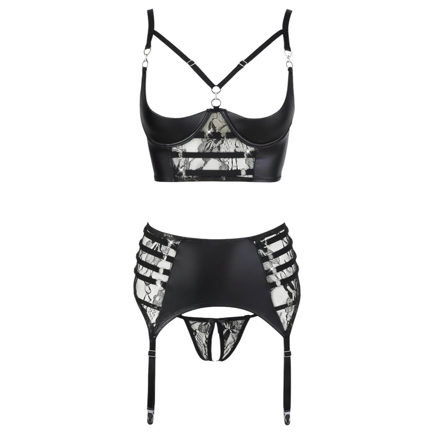 Merész, prémium fehérnemű szett, amely érzéki csipkével, szikrázó fém elemekkel és rafinált pántokkal teszi felejthetetlenné a megjelenésed!