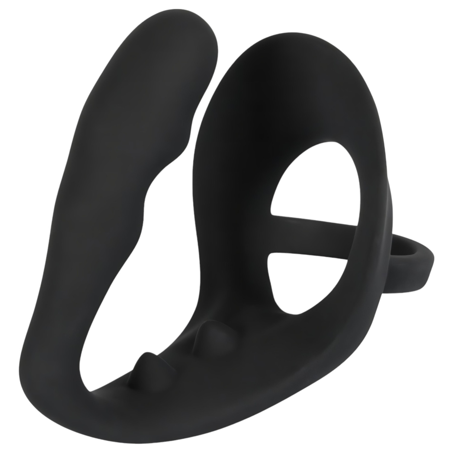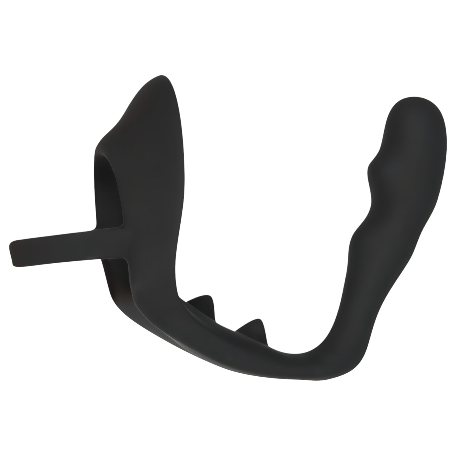 A bársonyos tapintású, kiváló minőségű szilikonból készült heregyűrű és péniszpánt egy análdildóval egészül ki, amely intenzív prosztatastimulációt biztosít.