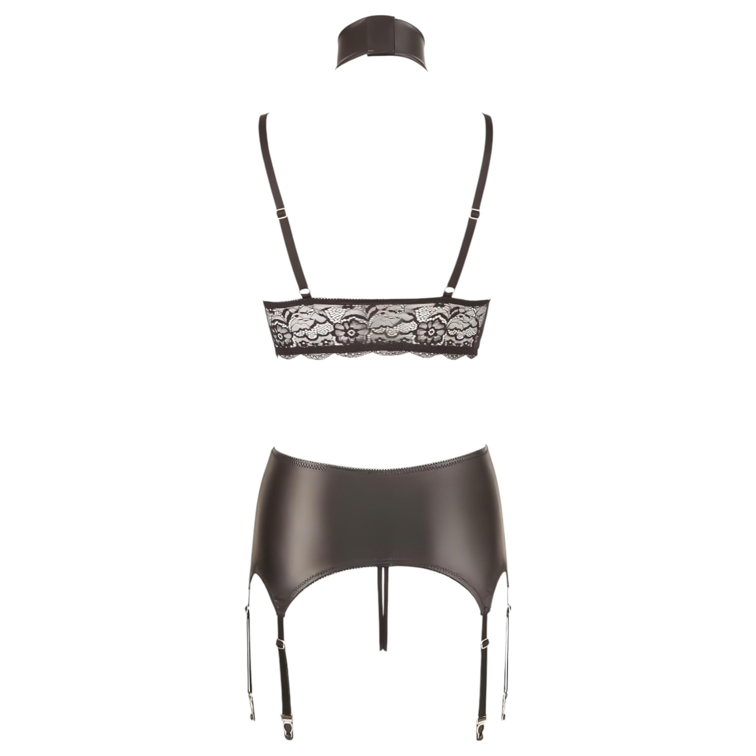 • Komplett szett: A melltartó, harisnyatartós tanga, nyakpánt és csuklóbilincs gondoskodik a teljes élményről.