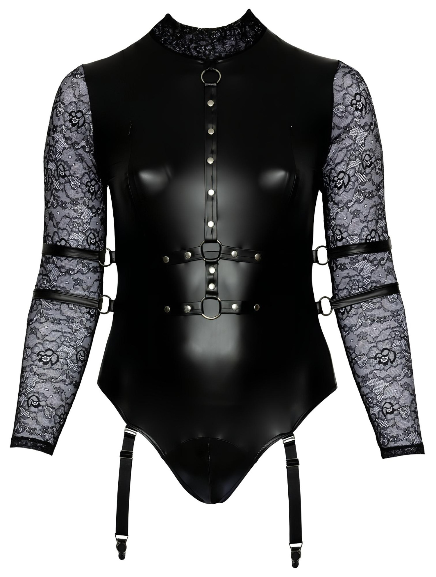 Cottelli Bondage Plus Size - csipkésujjú body (fekete)