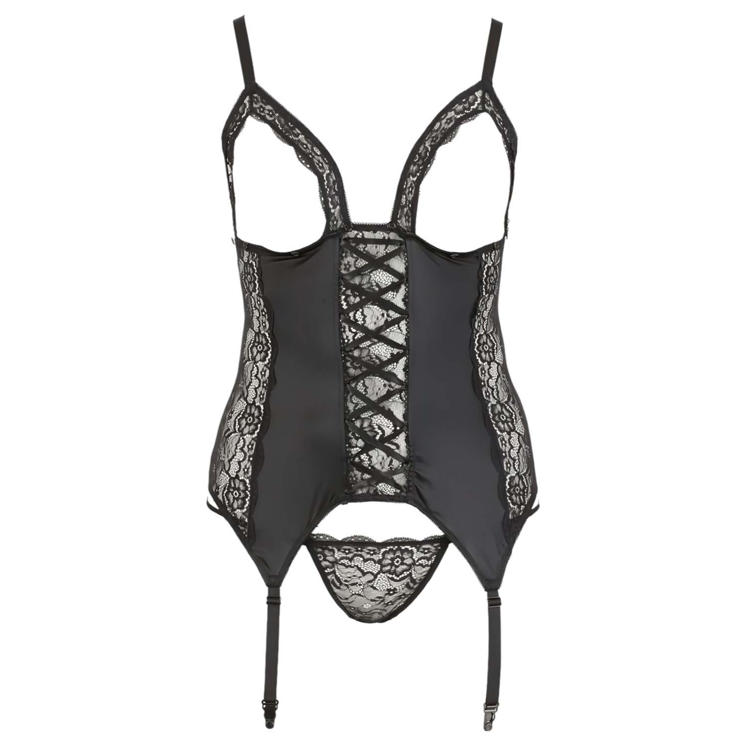 Cottelli Plus Size - variálható harisnyatartós felső (fekete)