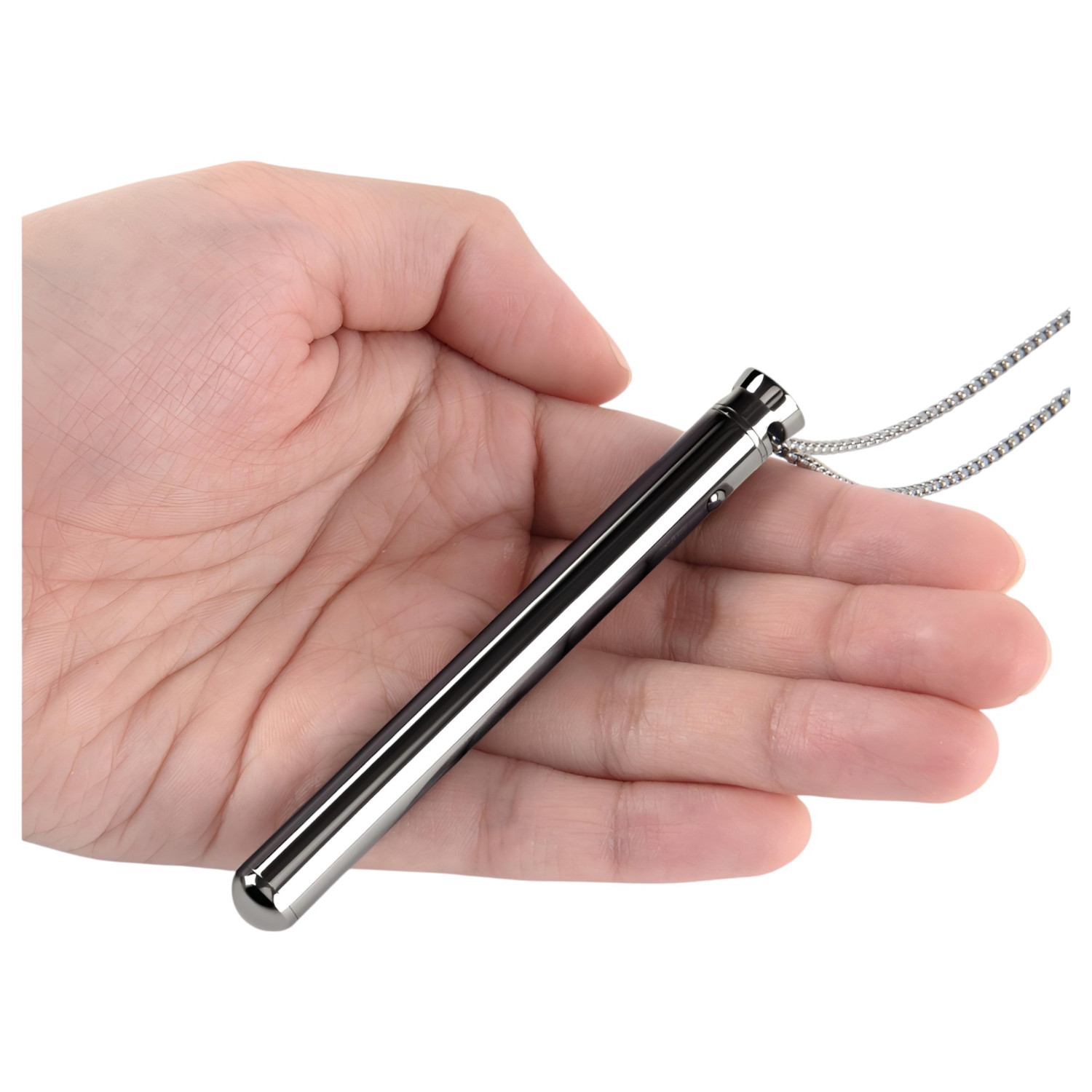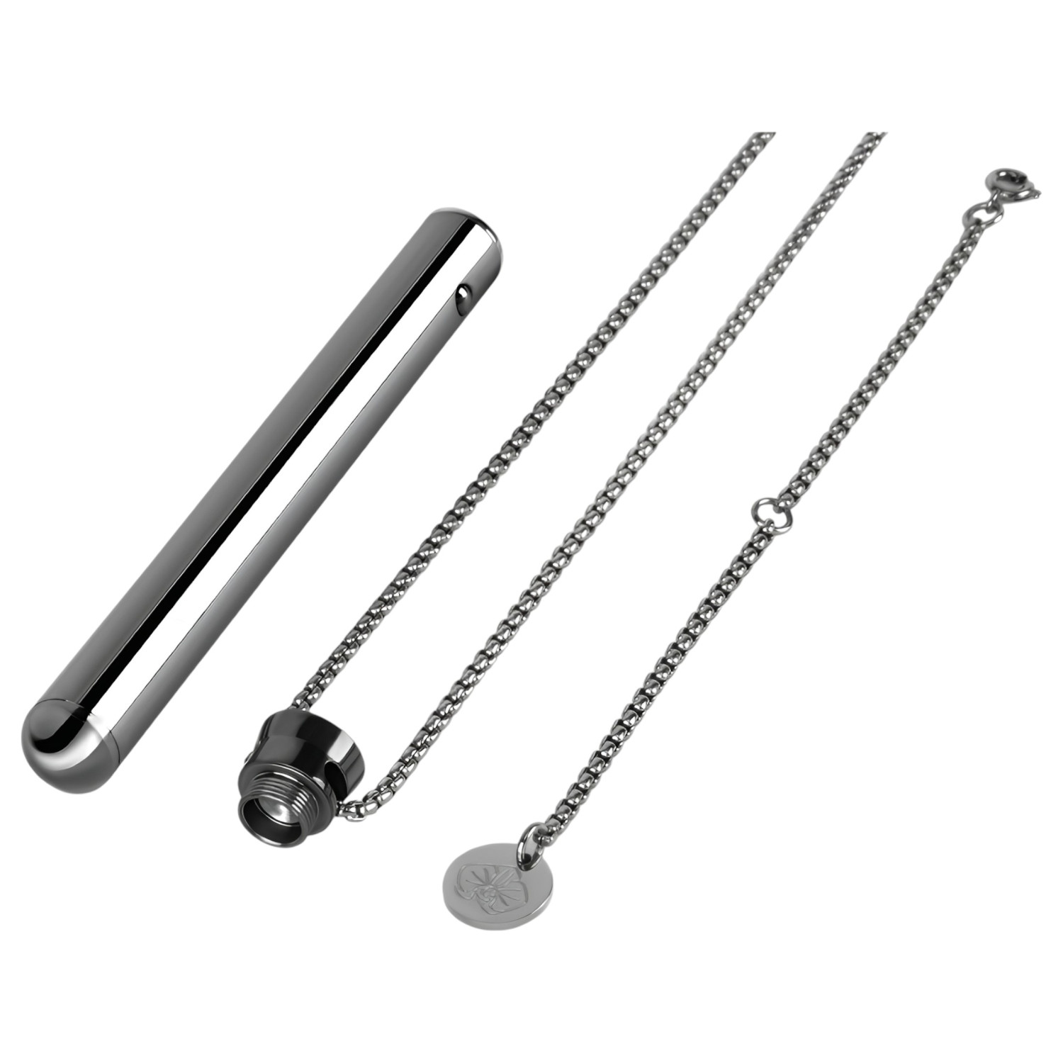 Ez a gyönyörű, medál formájú vibrátor két funkciót ötvöz: diszkrét ékszerként viselhető, ugyanakkor gyorsan elérhető intim kényeztetést nyújt – így az élvezet bármikor kéznél van, stílusban és kényelemben is.