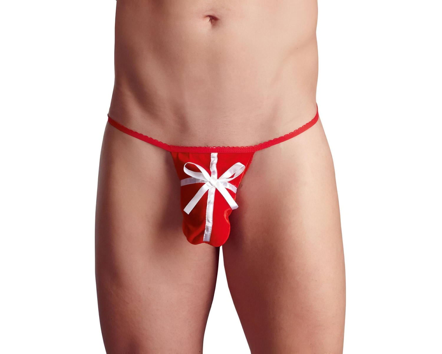 • 1 darab férfi tanga piros bársonyból, fehér masnival