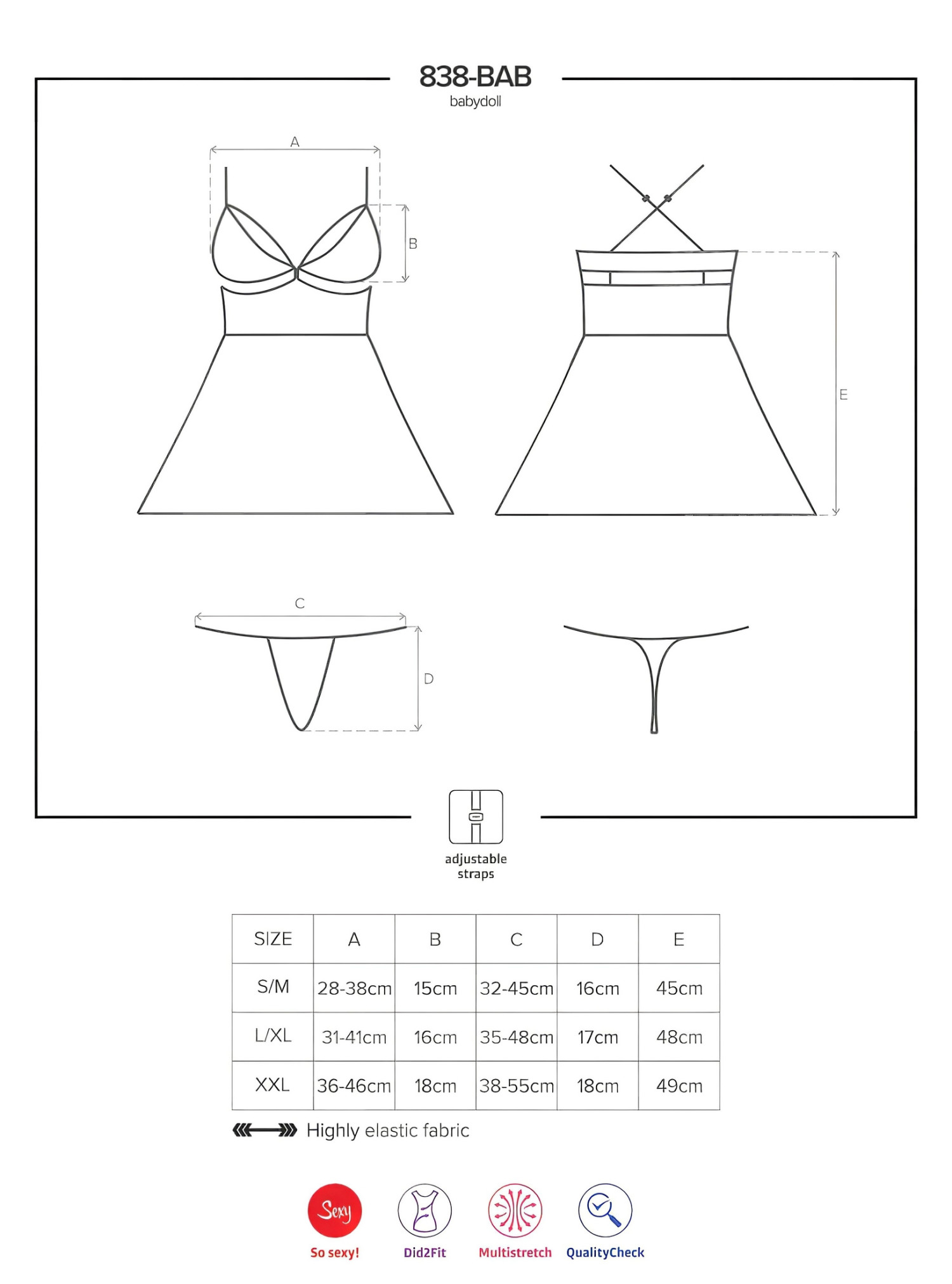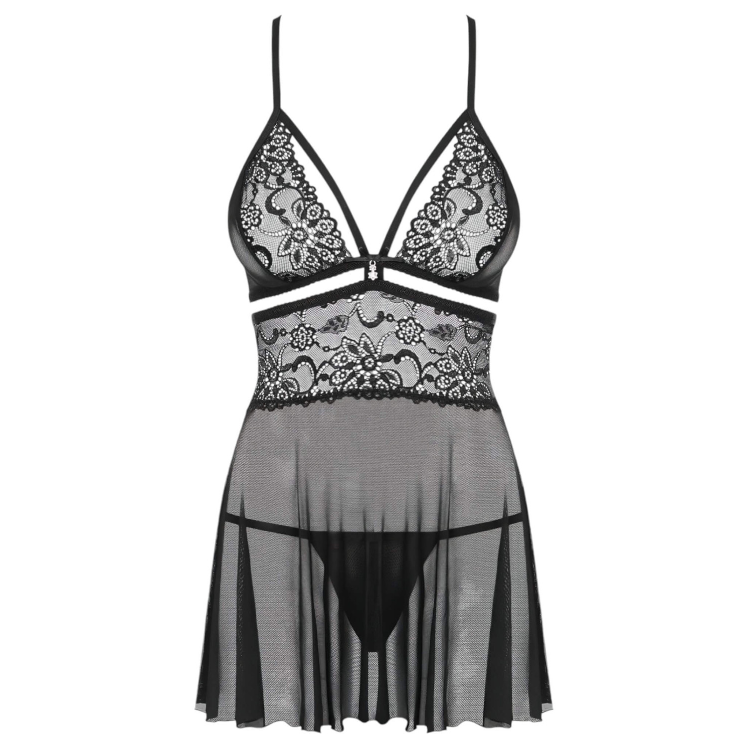 Vélemények Obsessive 838-BAB-1 - áttetsző, csipkés babydoll szett (fekete)