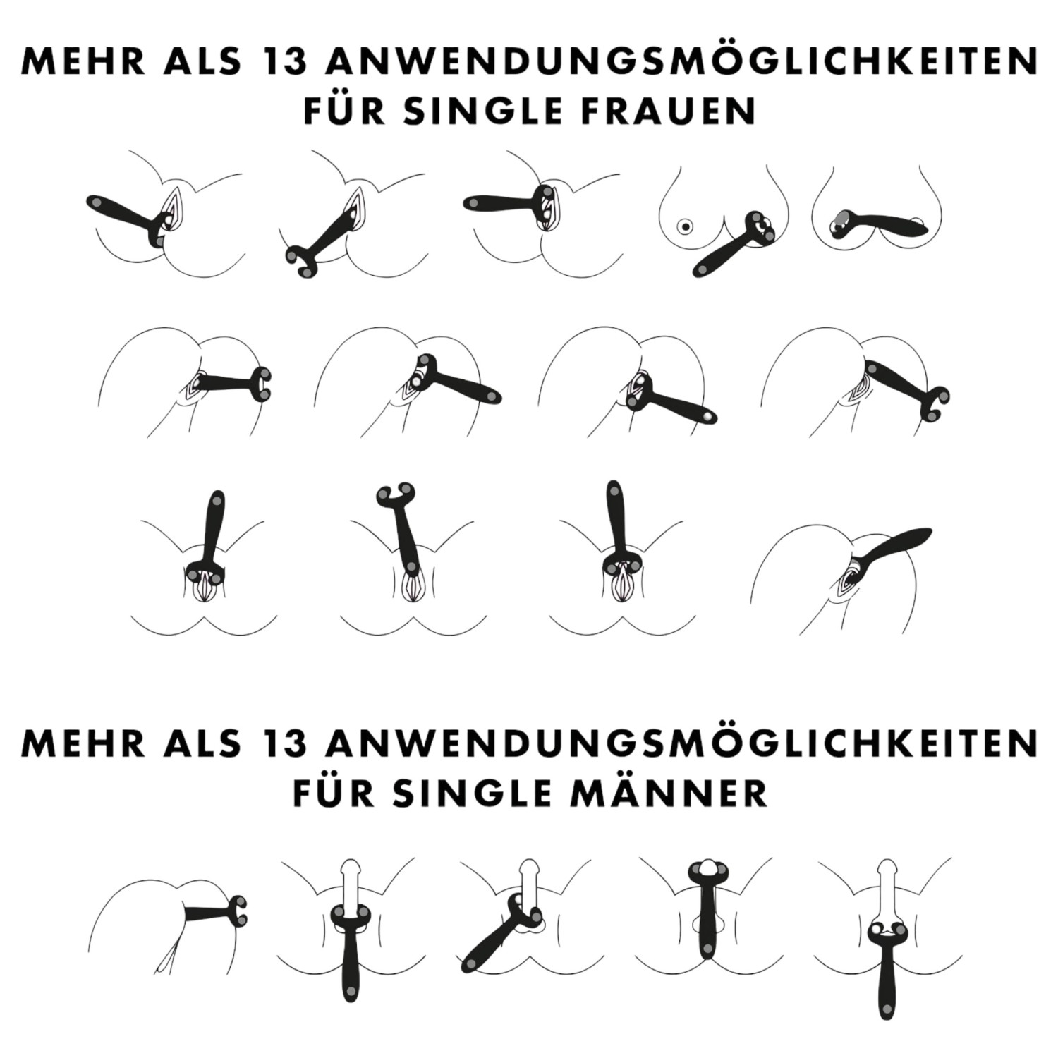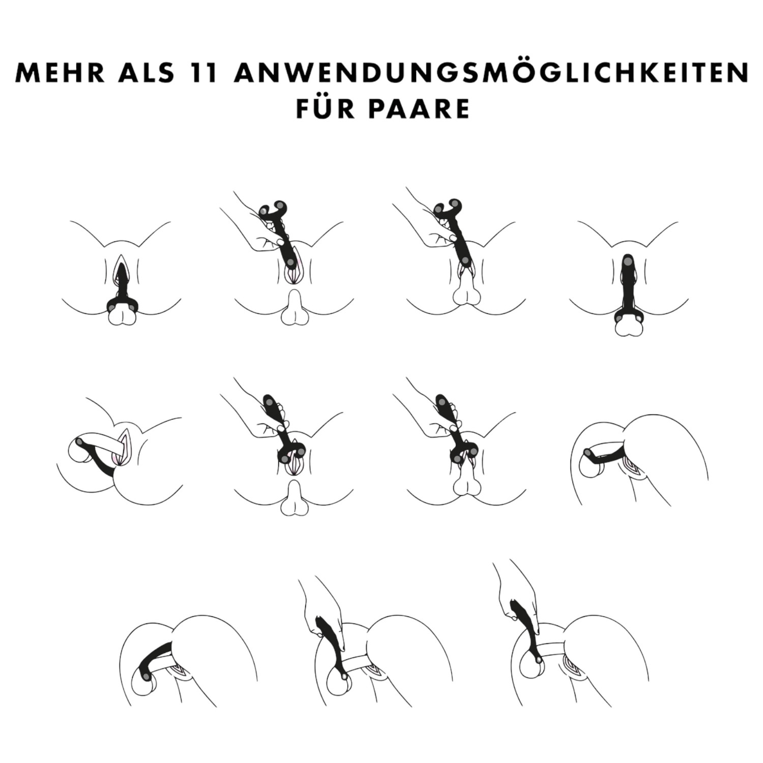 Helyezd a péniszt a két rugalmas kar közé, és mozgasd fel-le vibráció kíséretében, vagy használd csikló-, mellbimbó-, hüvelyi vibrátorként, péniszgyűrűként, illetve páros aktus közben csikló- vagy herestimulációra. További ötletek a csomagoláson található illusztrációk között!